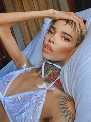 Gena Tew обладает запоминающейся внешностью с множеством татуировок и пирсингом. В интернете распространены её фотографии, включая откровенные, что привлекает внимание аудитории. Ее параметры — рост 163 см и вес 41 кг.